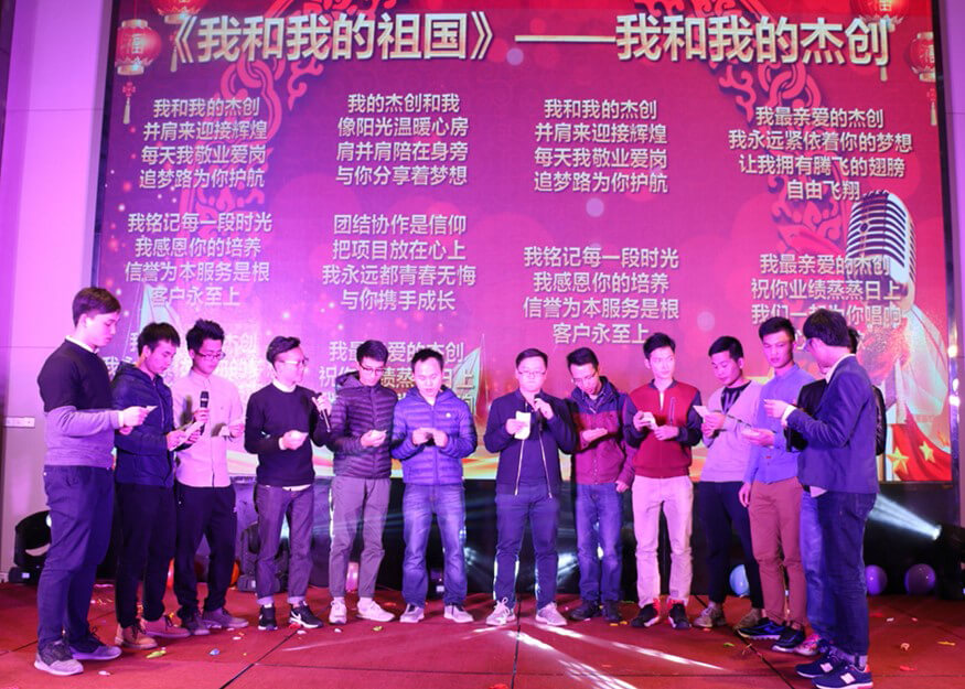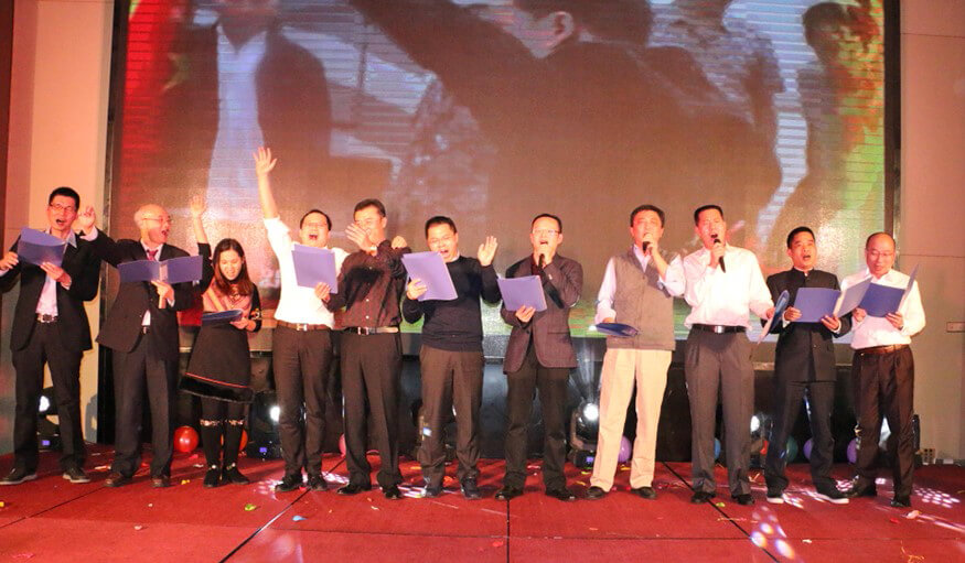 在度过三个小时的欢乐时光后,年会进入了尾声。全场人员齐齐进入演唱状态,伴随着优美的旋律,接连合唱了《相亲相爱一家人》、《同一首歌》、《朋友》三首歌曲。歌声飞扬,群情高涨,将现场气氛推向最高潮。大家放开歌喉,大声唱出心底的心声,尽情表达出对东升国际、对他人的祝福和感恩。所有人的歌声交织在一起,彼此的心灵也在密切地交流。在响亮动听的大合唱中,东升国际智能2016年度总结表彰大会暨2017迎新年会圆满落下了帷幕。