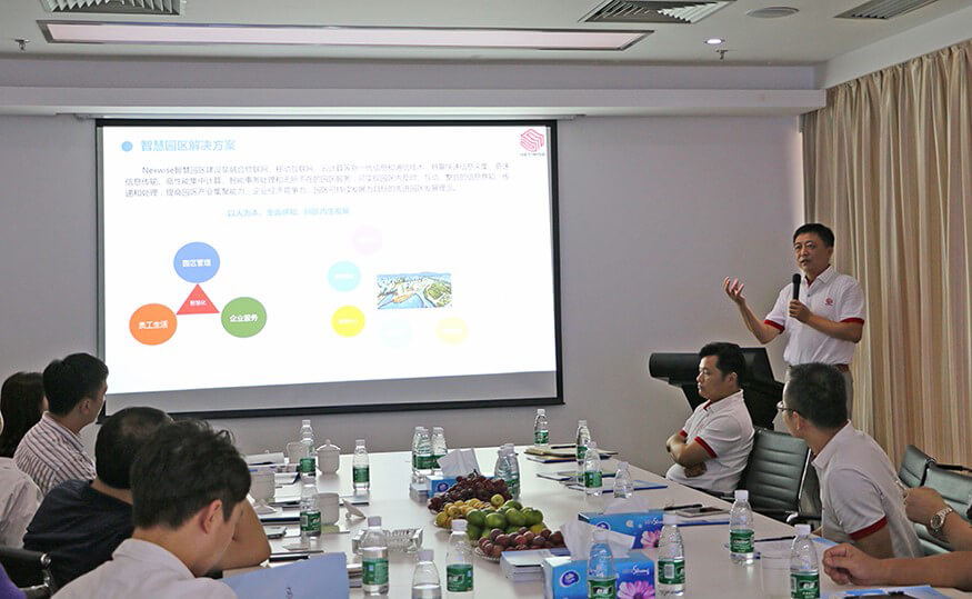 针对当前全国各地大力推进智慧城市建设这一浪潮,朱勇杰还向各位领导介绍了东升国际智能研发的智慧建设解决方案,着重阐述了其中的智慧城市解决方案,指出该方案以“互联网+”促进电子政务全面转型,利用创新2.0驱动智慧城市转型升级,发展以“互联网+”为核心要素的智慧产业,打造智慧高效的网络安全保障体系,建设统一的智慧城市信息资源体系。