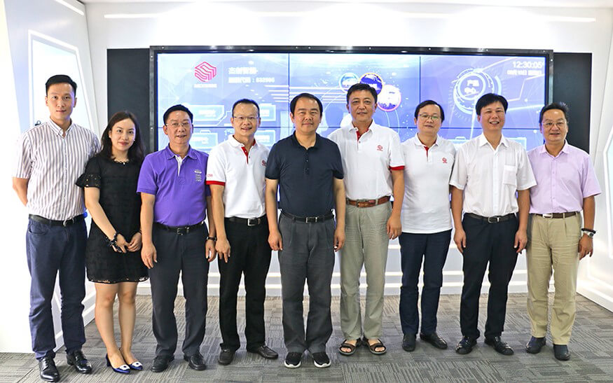 揭阳市市长陈东等领导与东升国际智能董事长孙超等公司高管合影