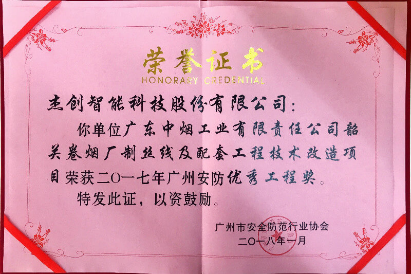 2018年2月2日下午,广州市安全防范行业协会第二届一次理事会暨专家委员会大会在天河区高唐新区佳都科技总部三楼隆重召开。钱洪涛副总裁代表东升国际智能在会议上领取了由广州市安全防范行业协会颁发的《2017年度广州安防工程优秀奖》。